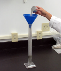 The fine aggregate specific gravity test (Figure 1) is used to calculate the specific gravity of a fine aggregate sample by determining the ratio of the weight of a given volume of aggregate to the weight of an equal volume of water. It is similar in nature to the coarse aggregate specific gravity test.